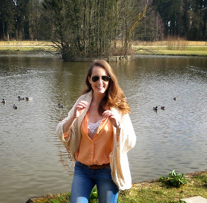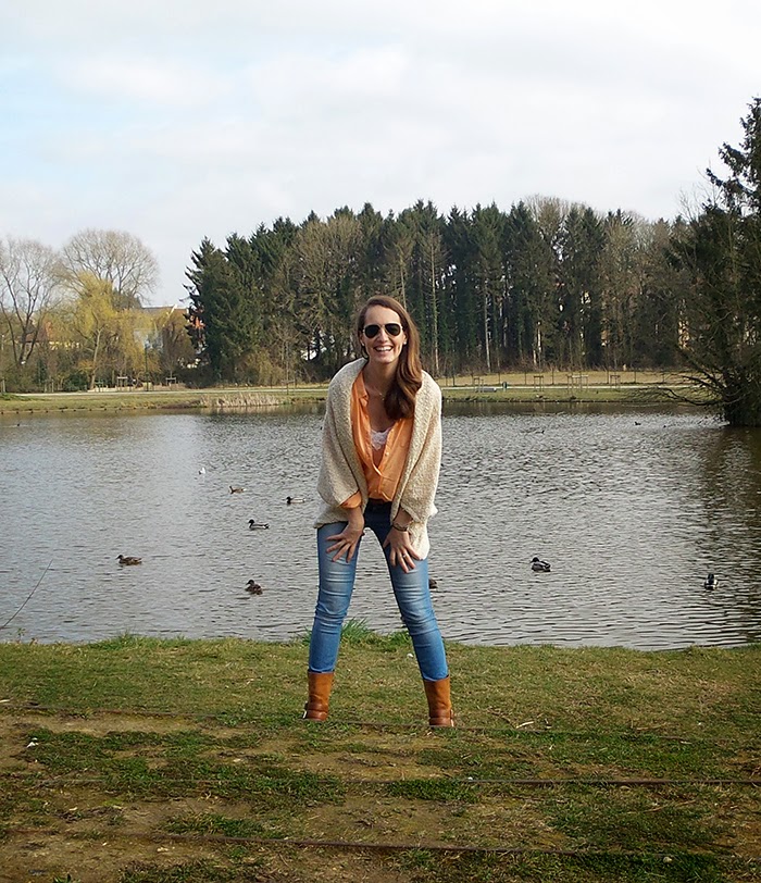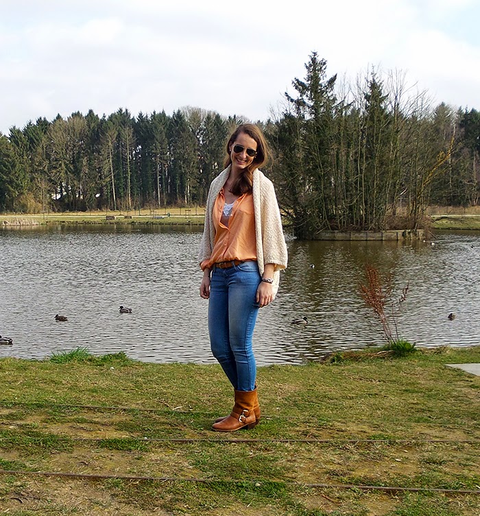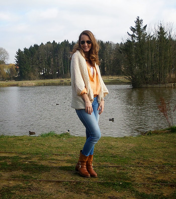 Good Morning, everyone! How was the weekend? Finally spring is here and even if the clouds and cold still with us and the sun still too shy I am feeling already in spring mood, so today I show you the pictures we took on Sunday during the 5min the sun came out. A relax and comfortable look with my orange shirt as main item, the perfect shade for this new season, don"t you think? I wear it with light blue jeans and accessories in off white and camel. I hope you like it, thank you very much for your visits and comments, have a great beginning of the week.