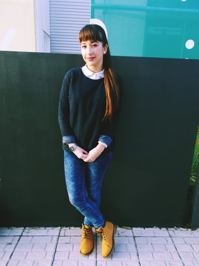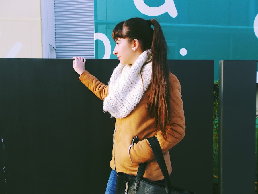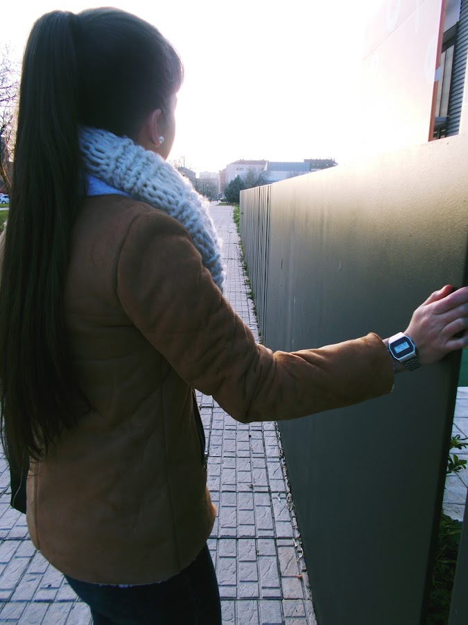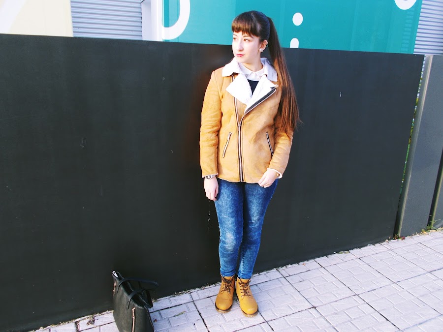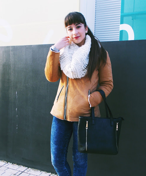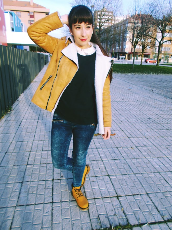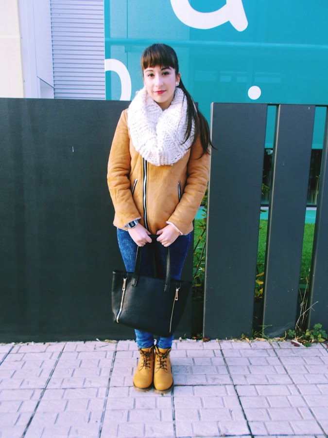 He combinado el abrigo con botas del mismo color, jeans y jersey azul oscuro y para terminar bufanda y camisa blanca, un outfit sencillo, abrigado pero a la vez trendy y chic.