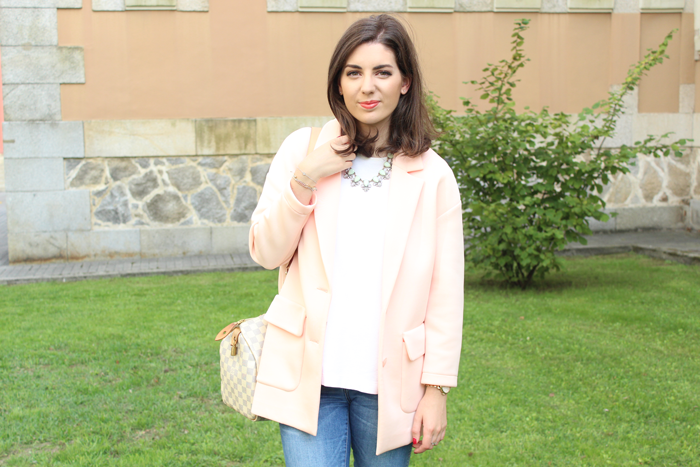 Buenos días!!! Un lunes más estamos aquí con nuevo look. Hoy toca uno sencillo pero que gracias a los complementos se ve más pensado, y es que la semana pasada me llegó este collar de Happiness Boutique y aunque cuando empezó la moda de estos collares grandes no me convencía últimamente he encontrado algunos que me encantan, como este, el color es super dulce.