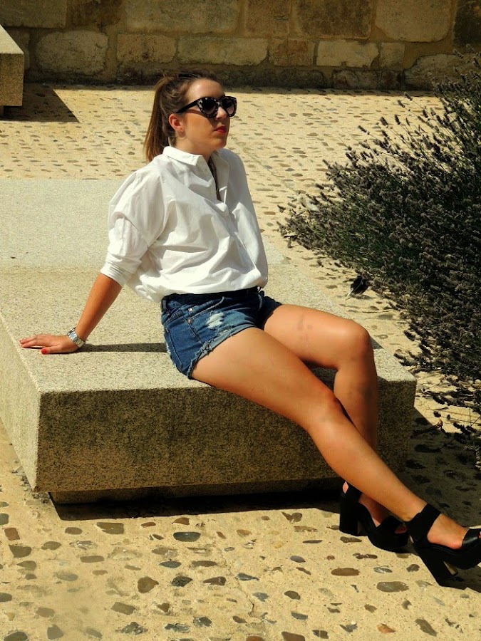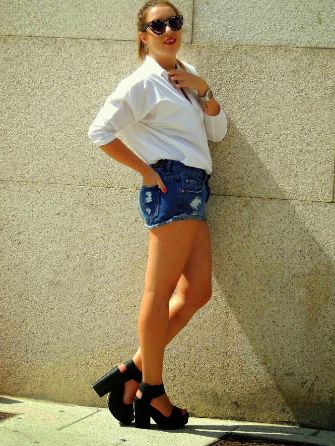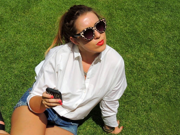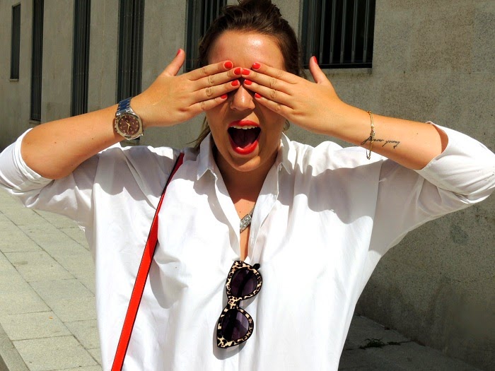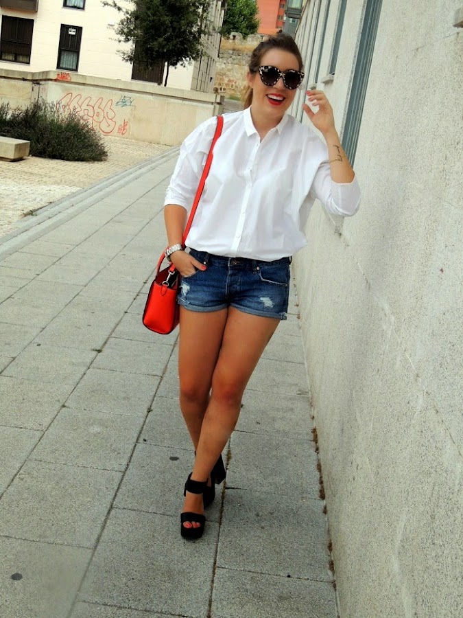 Si hay algo que me gusta de las rebajas,son los chollos de los últimos días, es cierto que la mayoría de veces solo suelen quedar restos de prendas inútiles, muy llamativas o sucias/rotas, otras en cambio encuentras esas prendas atemporales, que son maravillosas y encima tu talla a un 70% de descuento, ese fue el caso de esta camisa (y otra que enseñaré más adelante). Todo un básico, la camisa blanca, pero esta además en estilo oversize que me parece original, perfecta y muy favorecedora. Para el primer look con ella no me estrujé mucho la cabeza, bien es sabido que sus mejores aliados son los vaqueros, en clave de short para el verano, complementos en rojo y un toque de leopardo y ale! a pasear bajo el sol abrasador ;) Un look sencillo y a la vez con mucho rollo. Super versátil tanto con unos taconazos, como con unas sandalias planas o unas converses. Menos, siempre, es más ;) Disfruten de la semana! Besitos*