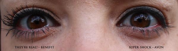 Siempre comparo las máscaras poniendo en un ojo la máscara y en el otro nada y esta vez pensé que sí, se iba a notar muchísimo la diferencia entre un ojo con esta máscara de Benefit y la otra al natural, pero claro, así no veríais la diferencia que hay entre una máscara de pestañas y esta y por ello, la comparé con la Super Shock de Avon, que es una máscara de pestañas que me gusta mucho y que creo que me deja las pestañas genial, aunque claro, después de ver la diferencia entre una y otra, me quedo bastante alucinada de la diferencia, juzgar vosotras mismas las fotos y me contáis que opináis, porque como ya os digo muchas veces, una imagen (o varias) valen mas que mil palabras.