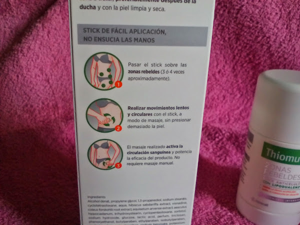Como veis es un stick para aplicar en las zonas rebeldes, o como es el caso de mi hija, que tiene 23 añitos, quien los pillara, que apenas tiene celulitis, la tiene localizada y es mas cómodo y eficaz aplicar un producto mas concentrado y específico, Thiomucase zonas rebeldes es un tratamiento intensivo que actúa directamente sobre las zonas rebeldes , quema la grasa acumulada y evita la formación de celulitis .