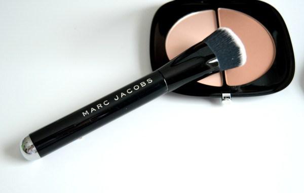 Para las mejillas, me limitaría a un contorneado que diese forma, luces y sombras al rostro, pues unas mejillas sonrosadas no encajarían con el look. Para ello emplearía el dúo de contorneado de Marc Jacobs con su brocha The Shape.