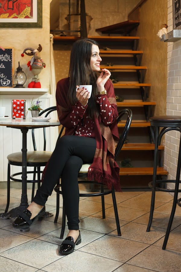 Hoy os dejo un look en negro y burdeos estupendo para ir arreglada y cómoda. Me tiene enamorada esta blusa de florecitas =). Espero que os encante tantísimo como a mi!