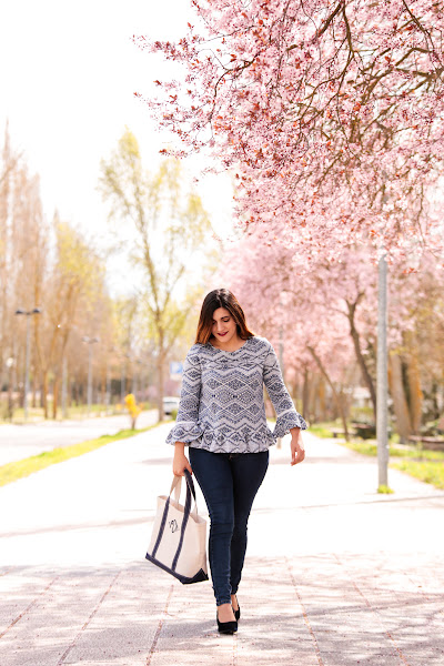 Bromas aparte, esta fue una de mis mejores adquisiciones de cara a la primavera. Me encanta no solo gracias a su precioso print azulejado, sino también a su original forma con péplum, manga francesa y acabado con volantes en forma de campana. Es que es ideal. Es capaz de cambiar cualquier look de camiseta+jeans en algo mucho más estiloso y se adapta estupendamente al tiempo primaveral.