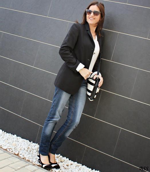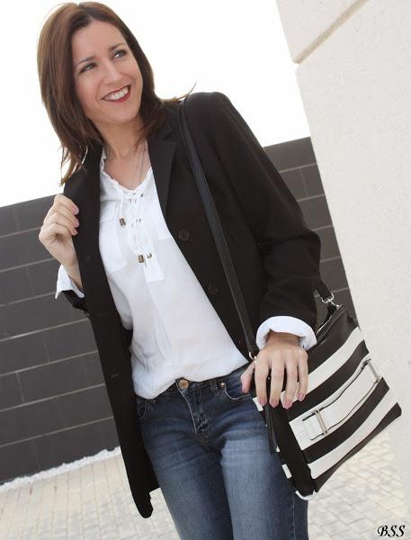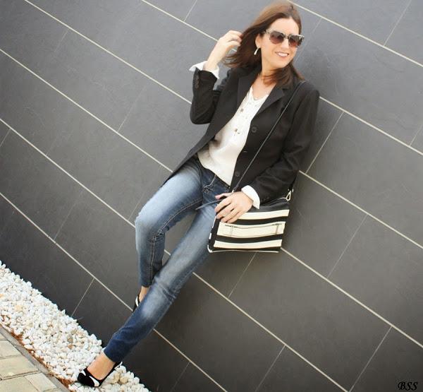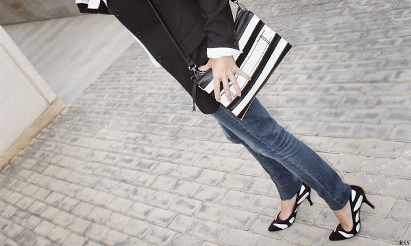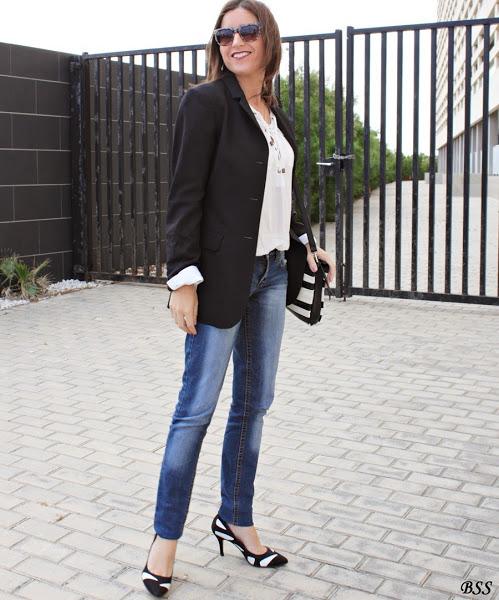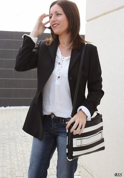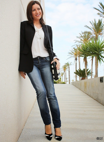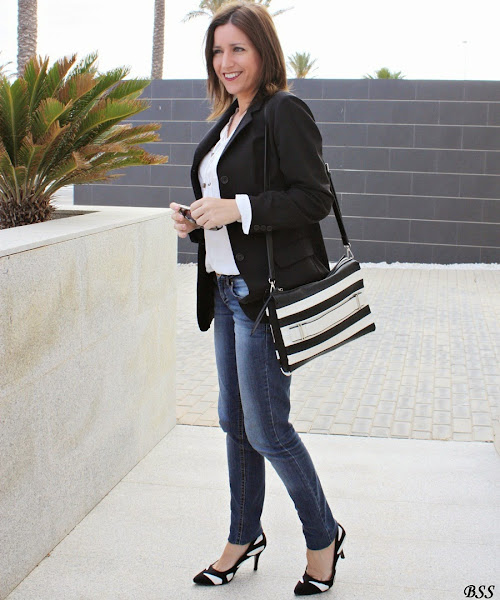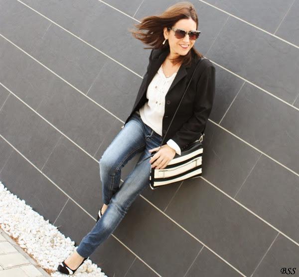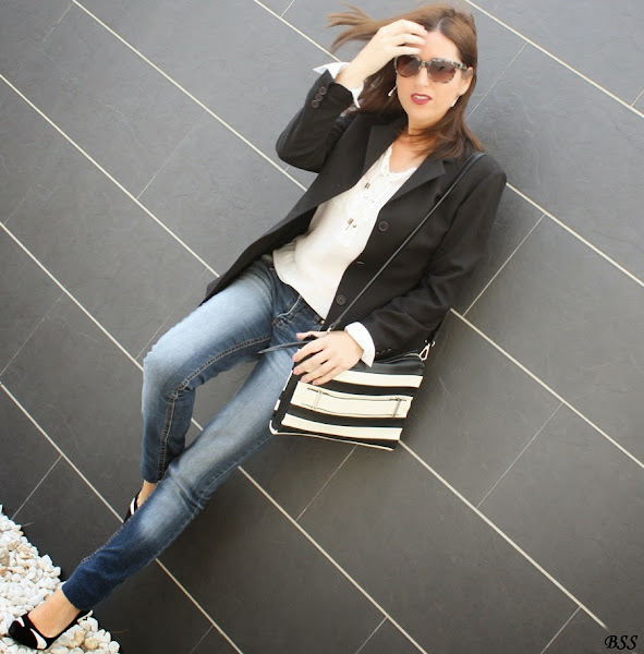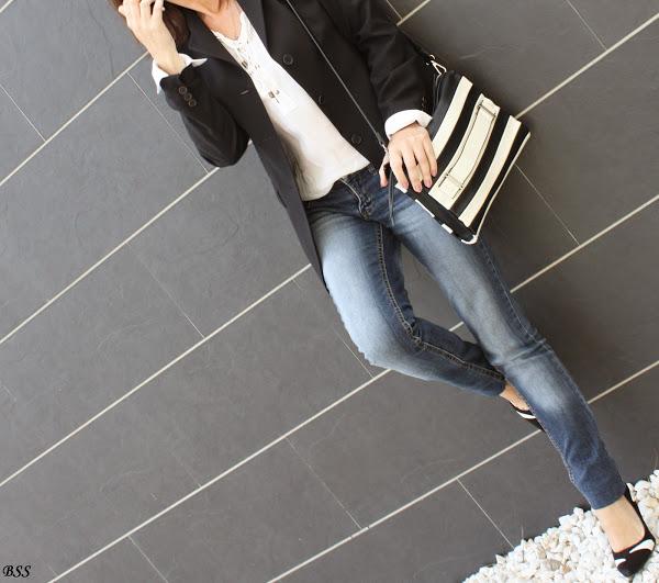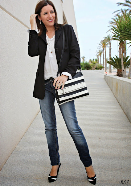 Blanco, negro y jeans, apuesta segura para un día cualquiera...eso si, añadimos unos complementos especiales y mucho mejor,no?...labios rojos y a correr!!!