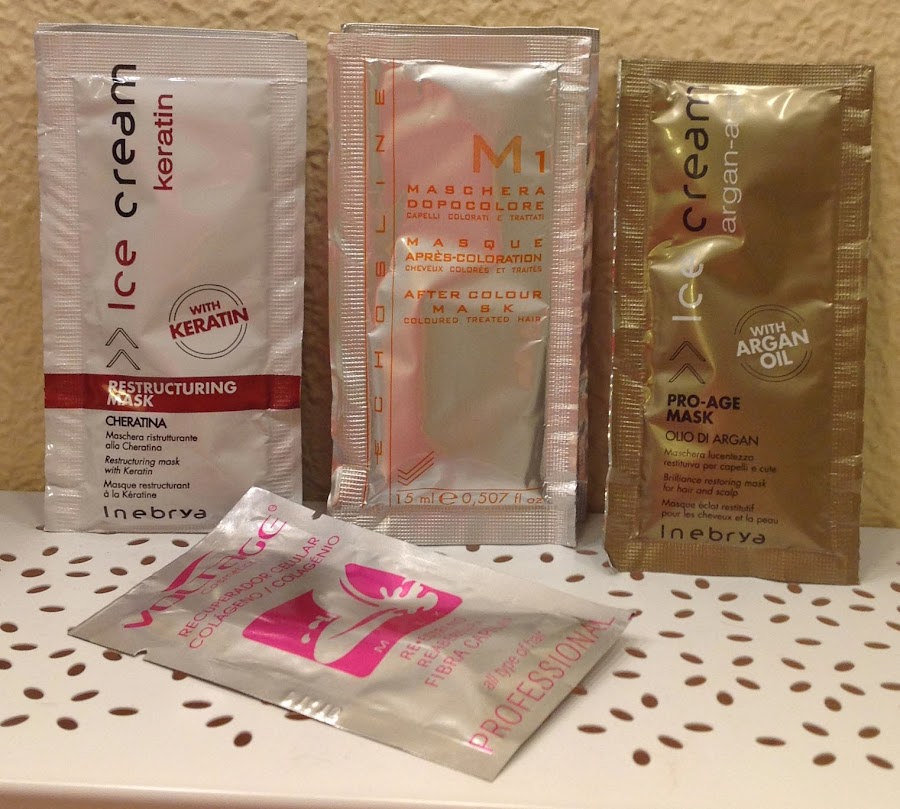 A mi me enviaron, al ganar un sorteo de su Facebook, un pack de muestras, del que os hablo a continuación, eran sobre todo mascarillas capilares (faltan algunas en la foto, ya que os hablé de ellas en este otro post):
