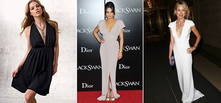 Para un escote en V, lo mejor es usar collares que se adapten a este tipo de escote o que incluso sea un poco más largo. Pero si lo que queremos es dejar el protagonismo al escote, mejor lucir unos pendientes largos