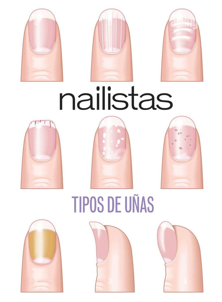 Existen muchos tipos de uñas distintas: débiles, finas, quebradizas, fuertes, grasas, escamadas, con surcos, mordidas, largas o cortas...