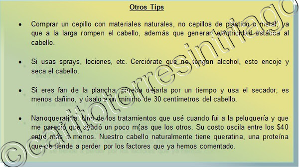 Así que hice una recopilación de mis tips para ayudar a nuestro cabello, espero los puedan poner en práctica: