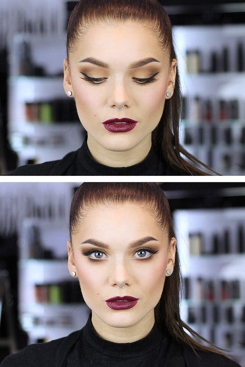 En los labios te puedes animar a probar con unos tonos metálicos que son la sensación en redes sociales, también los colores oscuros que son los mas favorecedores para cualquier chica cualquier tono de piel que tenga, etc. Estos colores los puedes usar con sombras discretas solo para enmarcar la mirada, eso si esmerate con el rimel para una mirada de impacto.