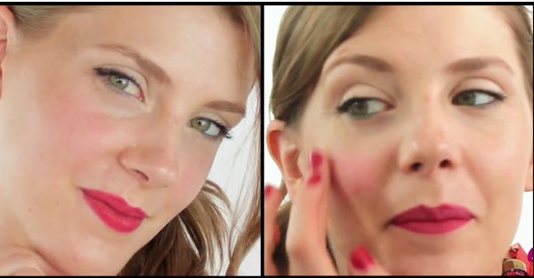 4. con un porción de rubor se hacen movimientos en los pómulos y a través del contorno de tu rostro. Mientras más mezcles, ¡más natural se verá el maquillaje!