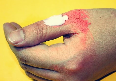 3. Usa el dedo índice de la mano contraria para mezclar el rubor con la crema. hasta ver una mezcla homogénea.