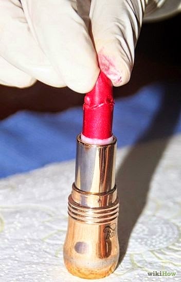 2. Se coloca el otro pedazo de labial encima y presionar para que se unan los 2 pedazos.