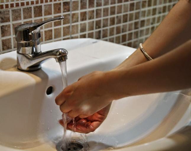 2- Una vez que las hayas pintado todas, espera unos pocos segundos a que el maquillaje se adhiera a la uña y, después, enciende la llave del agua , deja que salga agua fría y coloca tus manos bajo ella.