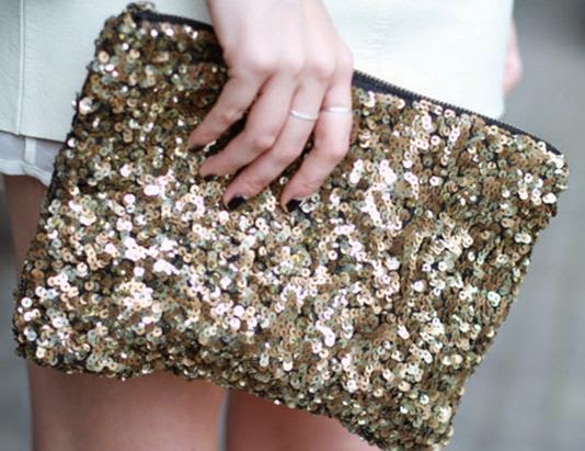 Cartera con lentejuela en dorado