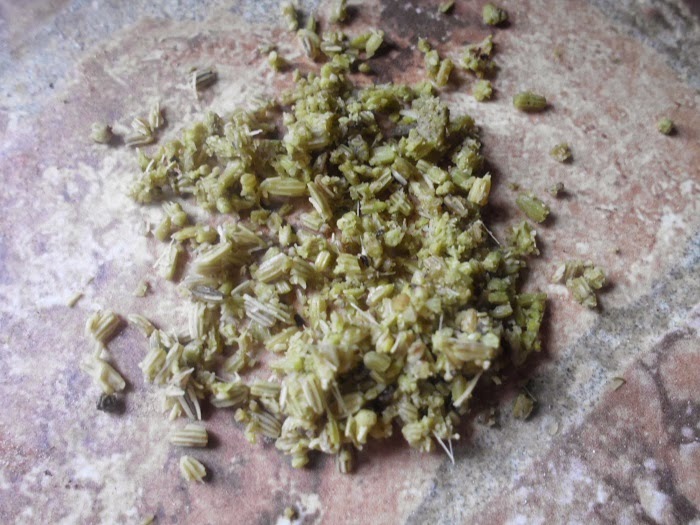 Aquí se ven bien los trocitos de hinojo y las semillas que vienen en el sobrecito.