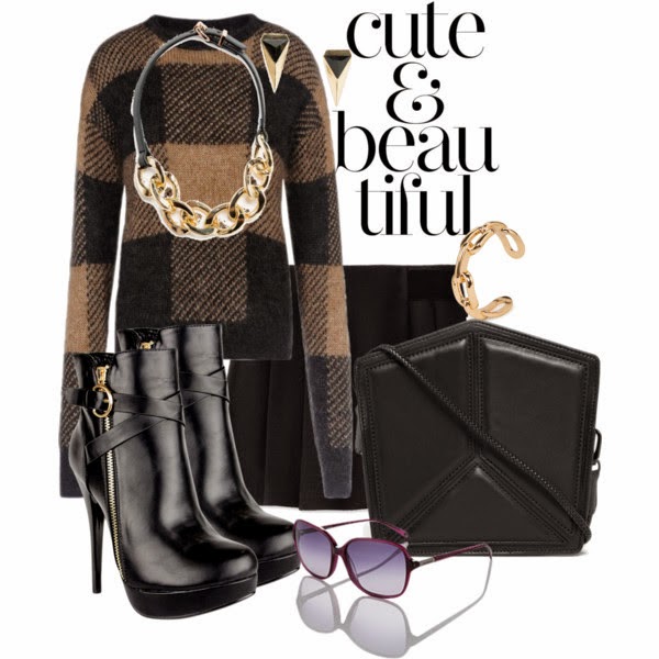 Aunque es un look básicamente negro, lo puedes combinar con un jersey a cuadros que tenga negro como este pero puede ser con azul,con rojo, con el que te guste más!
