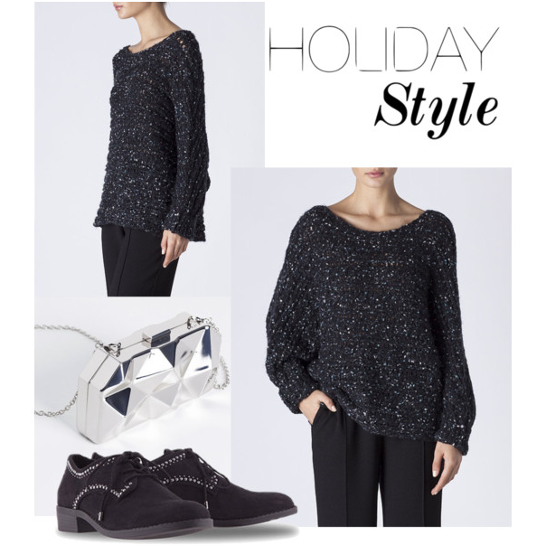 El estilo Tomboy es perfecto para ir cómoda estas navidades, inspírate en este con un look completo de SuiteBlanco. Jersey calado en negro 32,99??? que puedes llevar con un pantalón de tela negro. Clutch metálico plateado 25,99??? y zapatos de cordón negros con tachas en 29,99???