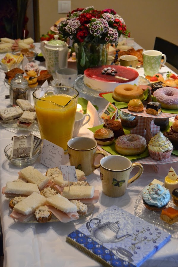 Comienza a las 16:00 y normalmente las personas se sientan a la mesa pero cuando hay mucha gente,como fue en mi caso, puedes hacer un "walking higtea". Significa que los invitados se sirven a medida que se acercan a la mesa.