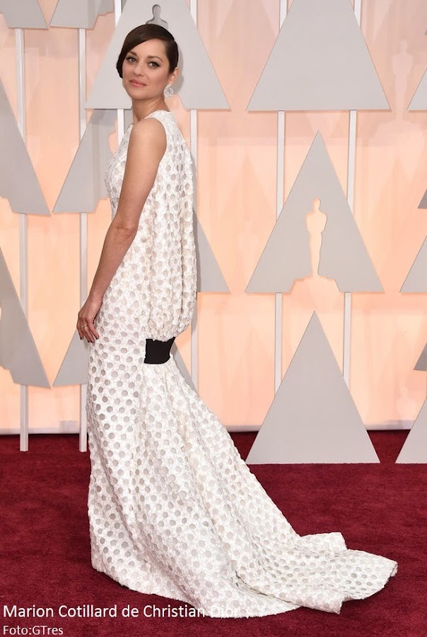 Yo, solo se coser un botón y por eso no entiendo el porqué de la franja negra detrás y justo debajo de las asentaderas, como es el caso de este vestido blanco de Christian Dior que lleva Marion Cotillard.