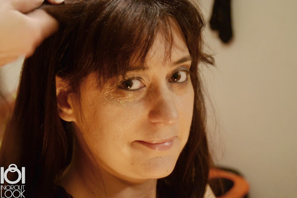 Mucha, mucha laca !! y largos peinados con moños y largas melenas, acompañados de un maquillaje con color y purpurina y pequeñas piedras alrededor de los ojos y en la frente para resaltar el toque oriental