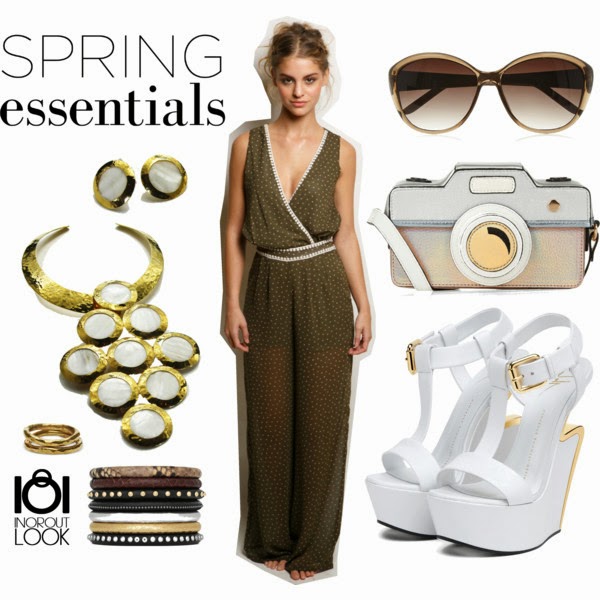 Mono largo de El Jardin de Manuela en color verde oliva, sandalias de cuña blanca de Giuseppe Zanotti, mini bolso en forma de cámara fotográfica de Accesorize. Un bellísimo collar de nacar de Aluzina Design, gafas de sol de M&S, anillo dorado de Toms y pulseras de Yves Saint Laurent