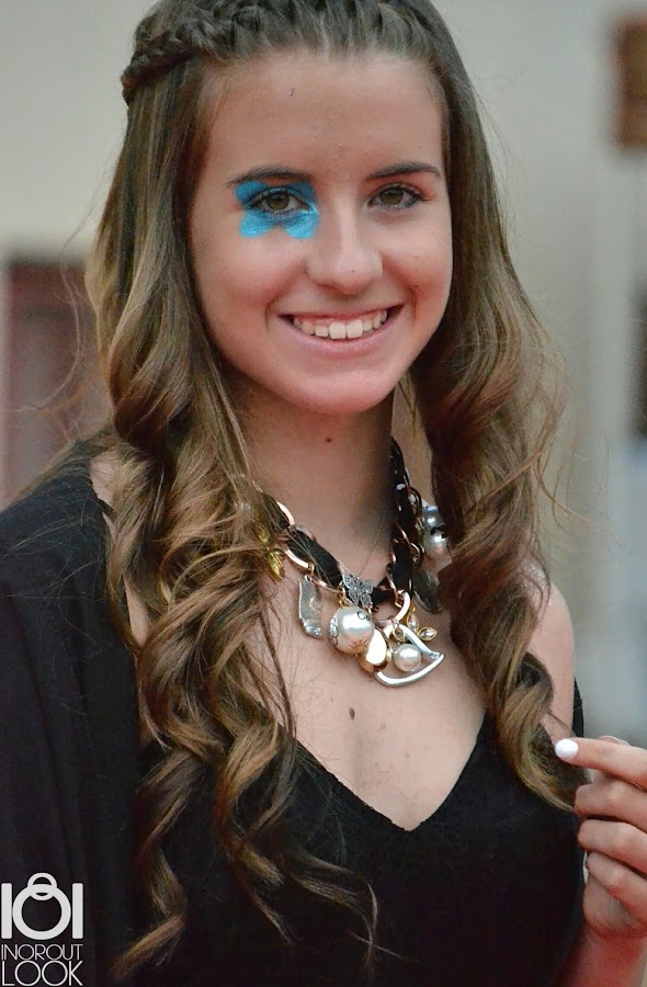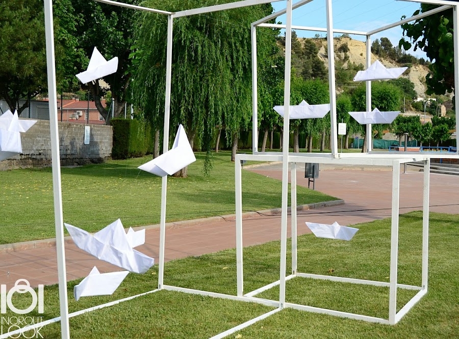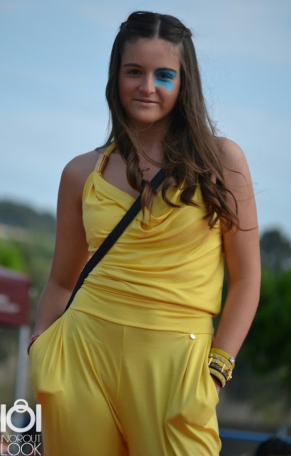 El calzado de hombre y mujer que verás en todo el desfile es de la tienda Milán Calçats, como estos preciosos suecos azules