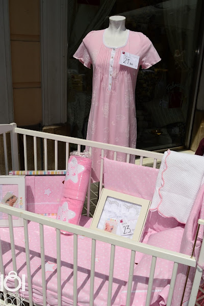 La tienda Montse Interiors, una de las tiendas participantes en la anterior desfilada del Racó de la Moda, mostraron un precioso conjunto de ropa de cama para bebé a juego con la bata de la feliz mamá