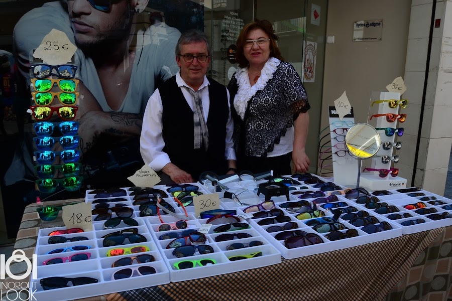 Los amigos de la Óptica Stigma, que desfilaron el pasado domingo en la desfilada del Racó de la Moda, también se vistieron para la ocasión y adornaron su escaparate con muchos detalles acordes a la época