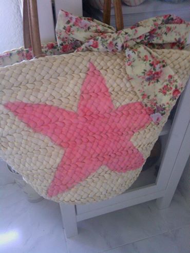 Las asas del bolso y el interior, están hechos con tela estampada de Sara Kay.