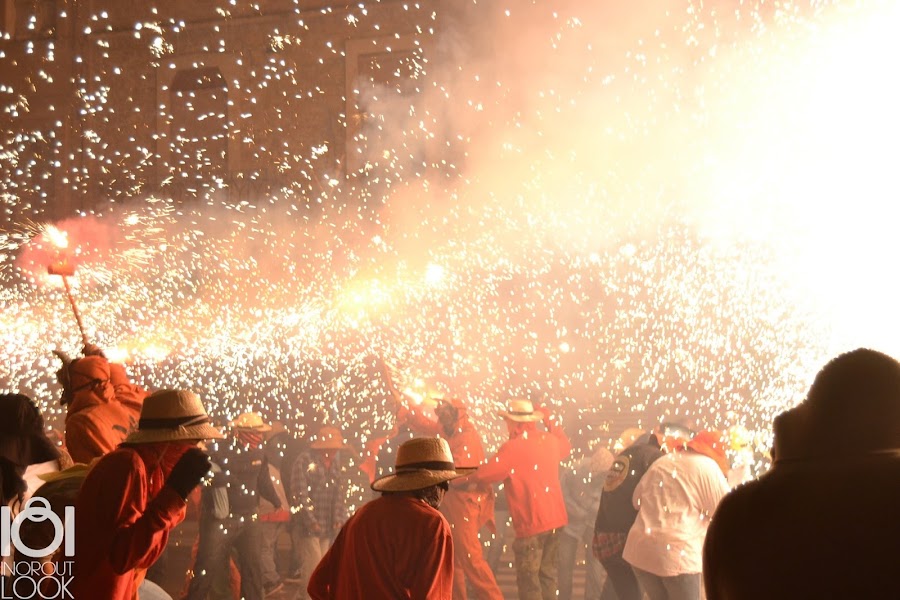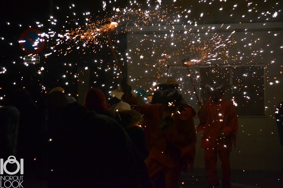 Para los que no estan aquí en España, les cuento que en verano comienzan muchos festivales y fiestas en cada ciudad y pueblo. Donde vivo yo, Sant Vicenç de Castellet , ha comenzado la fiesta mayor y la inauguran con el Correfoc. Es un baile de gente disfrazada bajo fuegos artificiales que se celebra en Cataluña, Baleares y Valencia. Aquí les traigo unas fotos de anoche para que se lo puedan imaginar. Todo esto bajo un ruido ensordecedor de tambores y fuegos artificiales que es una verdadera maravilla!