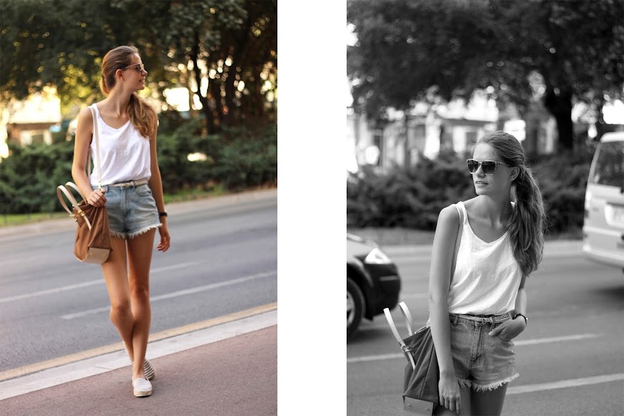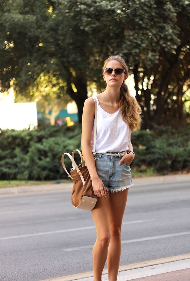 Hoy os enseño otro de mis looks básicos y cómodos para soportar este calor. Como siempre el blanco es el color principal ya que por lo menos parece que cuando nos vestimos de blanco sufrimos menos que con negro. Además aprovecho y os enseño mi nuevo bolso de rebajas de Bimba&Lola, es casi tradición comprar me un bolso de allí en rebajas. ¡Os dejo el link abajo!