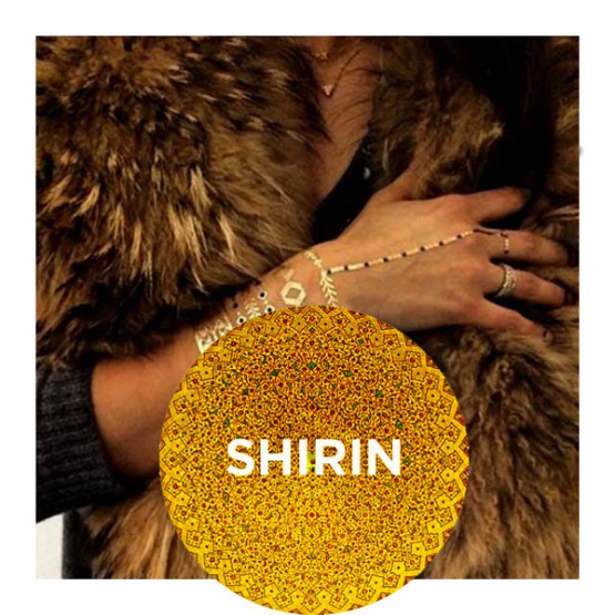 La colección de Shiran está inspirada en la belleza de la heroína Persa Shirin, con diseños vanguardistas en oro, negro y plata para las pulseras, collares, anillos, los brazos, manos, el cuello y el hombro
