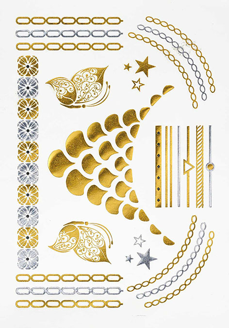 Tienen muchísimos diseños de tatuajes en forma de joyas, pulseras, colgantes, collares, figuritas en oro y plata que te daran un toque maravilloso en tu look y te haran destacar de todas las demás.