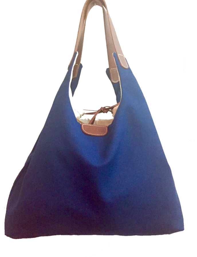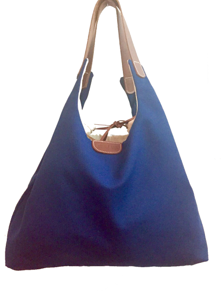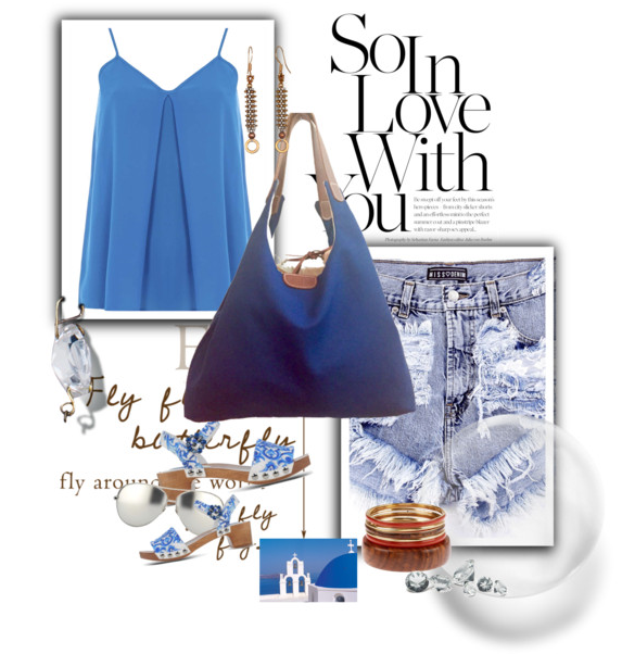 Para un día más casual que quieres lucir un estilo juvenil y desenfadado, puedes llevar el bolso de dos asas en piel tipo saco de color azul marino y combinarlo con unos mini shorts desgastados de tejano. Un top azul de tirantes y sandalias de medio tacón blancas con estampados y joyería de diferentes colores como el rojo, marrón y oro