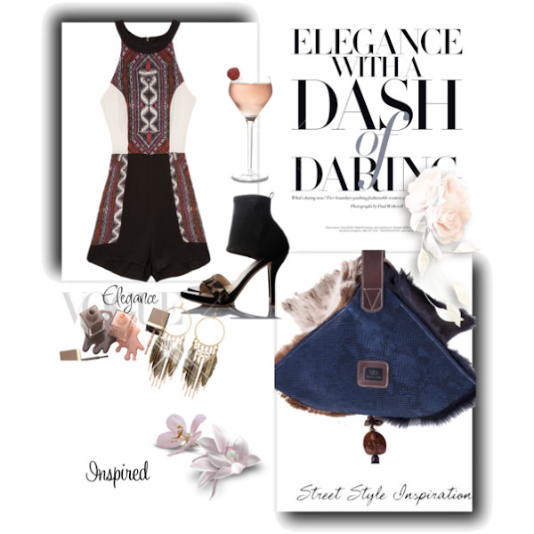 Lo puedes llevar con un jumpsuit en tonos marrón, beige y negro y sandalias de tacón con pulsera gruesa y joyería dorada para resaltar el brillo de la noche