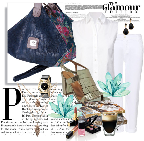 Yo te propongo un outfit en pantalón tres cuartos con camiseta sin mangas de color blanco para darle todo el protagonismo al fabuloso bolso, con sandalias de tacón metalizadas y joyería en oro para resaltar el estilo elegante.