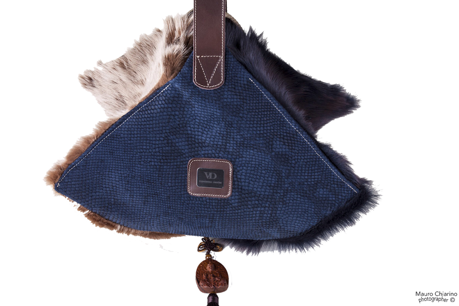 Para un compromiso de noche el bolso modelo "Piramide" es perfecto! No solo por lo particular de su forma, si no por su combinación en piel y pelo de dos tonalidades y el precioso detalle del colgante.