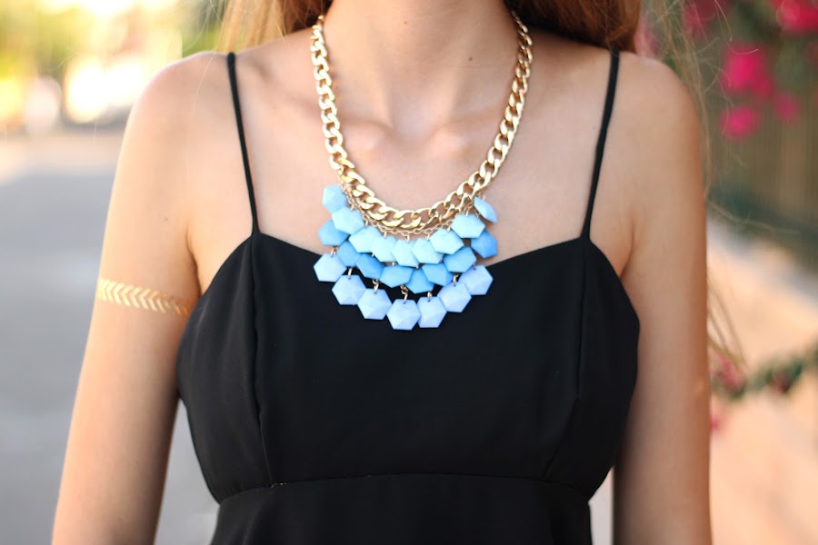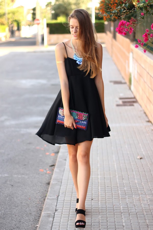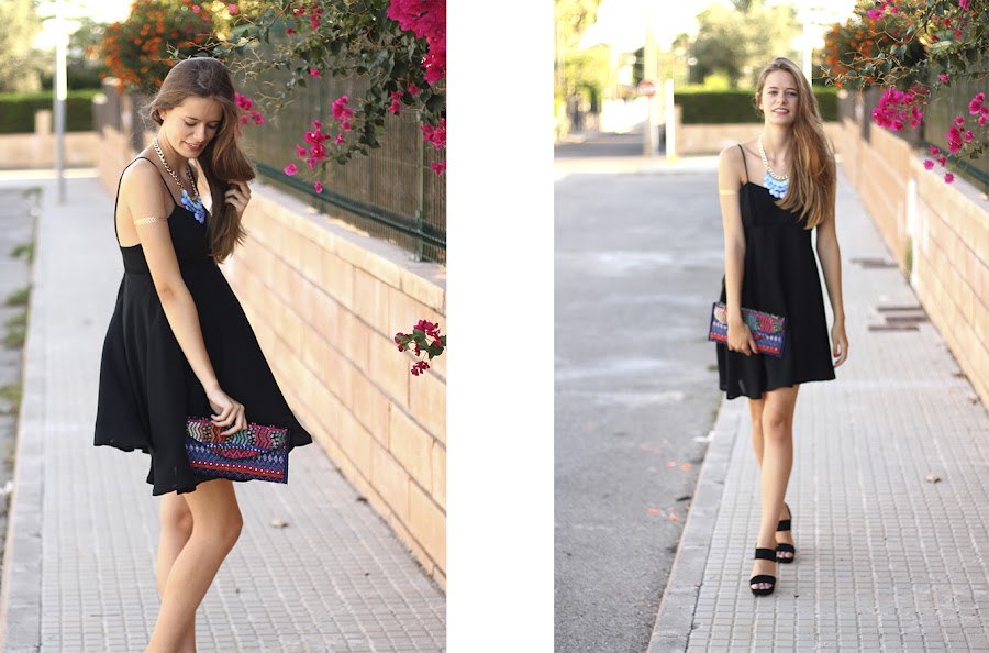 Today I show you a simple look but I love it. I do my propouse with a little black dress too. The necklace is from Lefties and I bought it in Madrid on July, the price was only 4€! Also I wear some tattos from Stradivarius.
