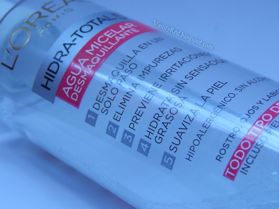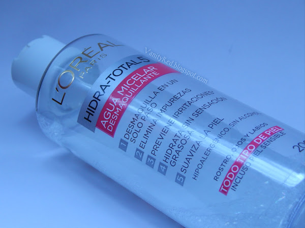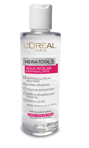Agua micelar de Lóreal "Hidra Total 5": así se llama este producto, para mi toda una novedad esto de las aguas micelares, sé que a países vecinos ha llegado hace ya mucho tiempo pero en uruguay este producto es relativamente nuevo. Les cuento que lo compre en Perfumerías San Roque en su tienda On line he hice un vídeo para mi Canal de YouTube al que pueden acceder haciendo click acá. Es un producto que ya apareció en varios de mis vídeos y ha llegado a colmar mi vida de cosas positivas jaja. Su precio anda en el entorno de los $290 pesos lo que lo hace muy accesible para ser un producto desmaquillante. El agua micelar contiene partículas llamadas micelas (micro vesículas tenso-activas) que actúan como un imán, que no sólo retiran el maquillaje, sino también eliminan impurezas y restos de suciedad.