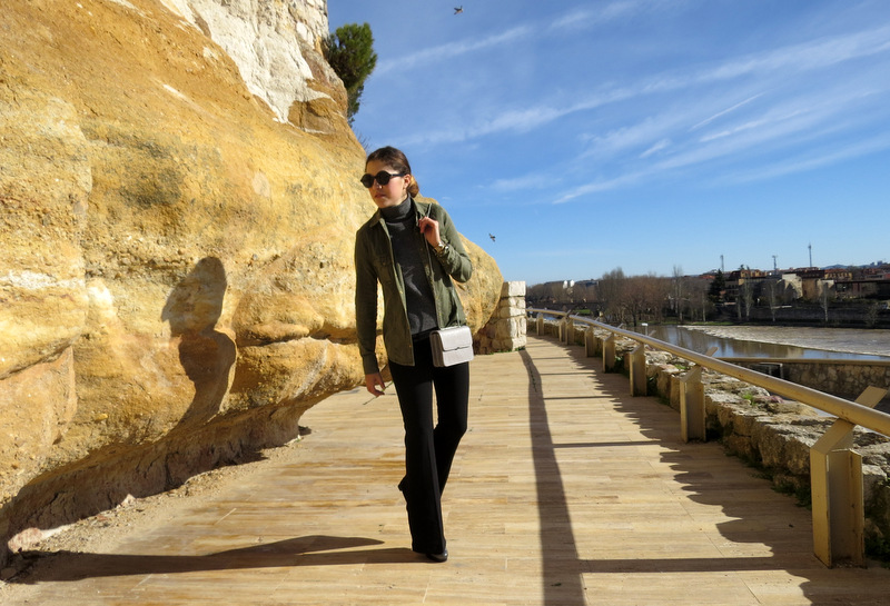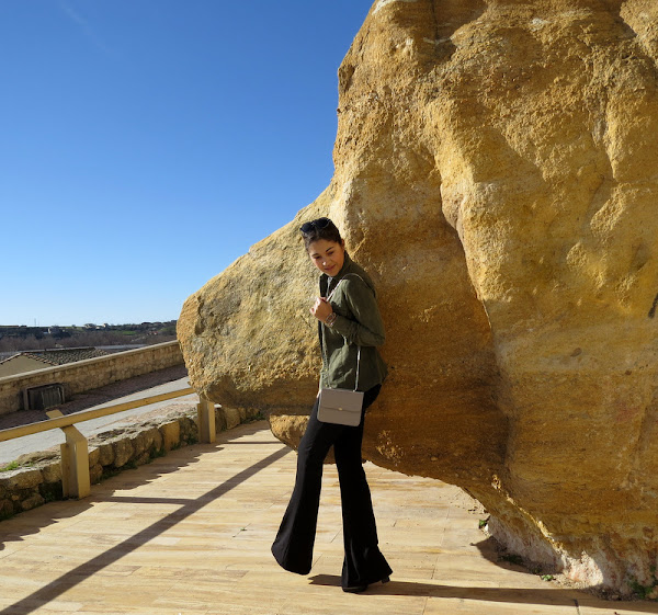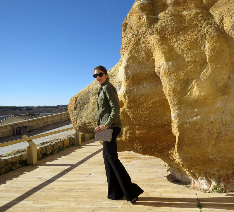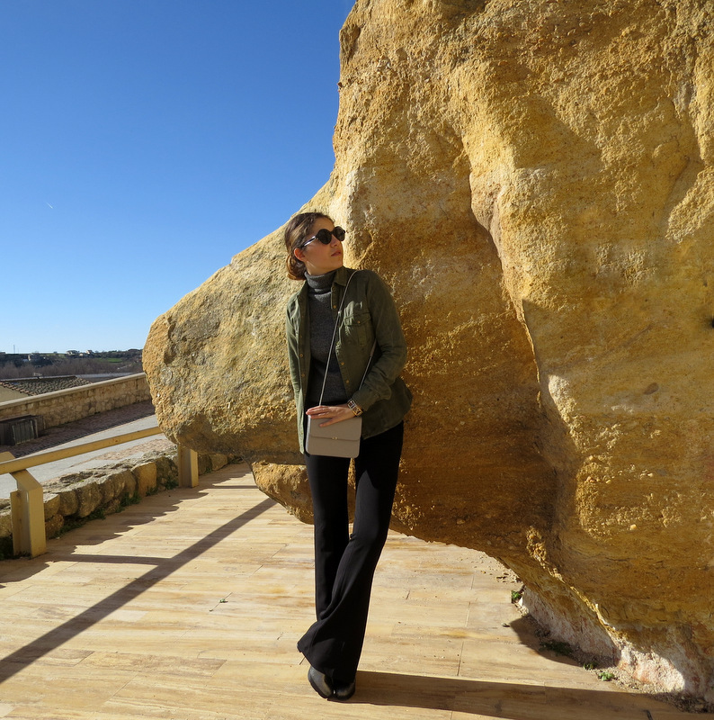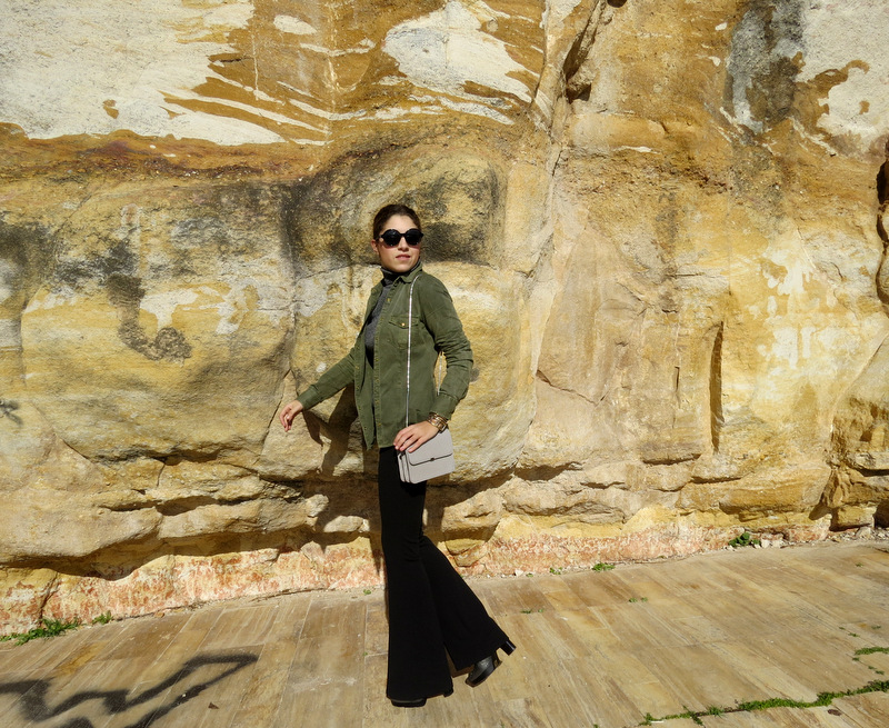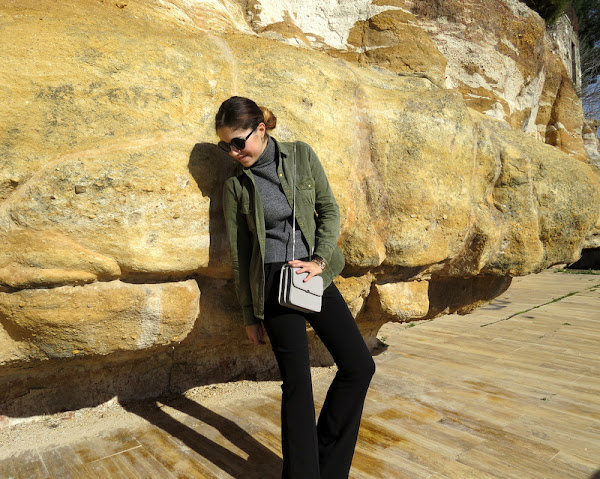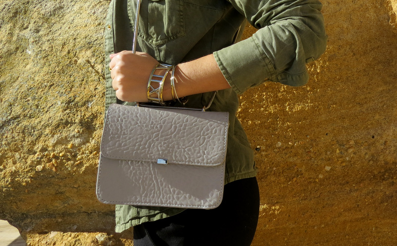 Hoy llevo un look repleto de básicos, jean efecto acampanado (aunque al principio tenia mis dudas de comprarlos), jersey de algodón en tonos grises y chaqueta militar combinado con gafas negras. En looks sencillos adoro incluir piezas de joyería finitas y delicadas pero con un punto divertido, como estas pulseras tan divertidas de en tonos dorados y plateados. Me enamoré de este bolso en cuanto lo vi y no lo pude dejar escapar.MUCHO AMOR!!!.