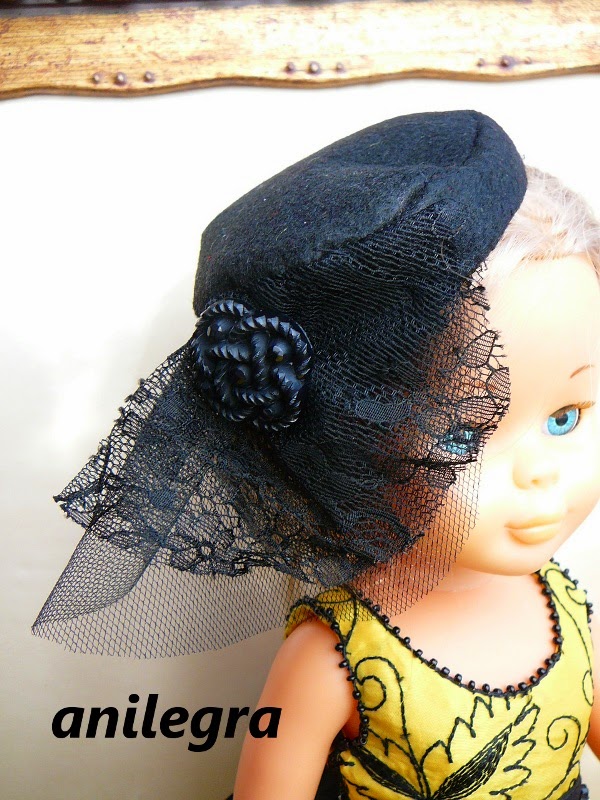 Me hizo gracia porque precisamente hace unos días había hecho yo uno similar para Nancy , y me volví loca rebuscando en todas las cajas intentando encontrar unas plumas negras que se que compré pero que cualquiera sabe dónde las tengo escondidas . así que ahora tengo estos para servirme de referencia , aunque el mío era más bien un tocado en plan años 50