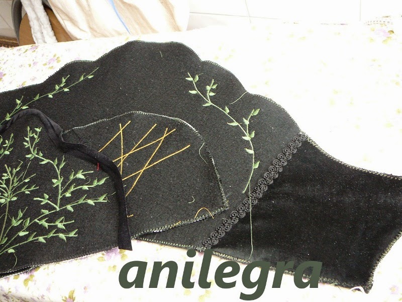 Y tambien estoy haciendo una montera , que es el "gorro" que lleva el traje tradicional gallego de hombre , en su versión de gala , ya os pondré fotos cuando lo tenga acabado , me espera una larga noche de trabajo , que bailan mañana a las siete de la tarde