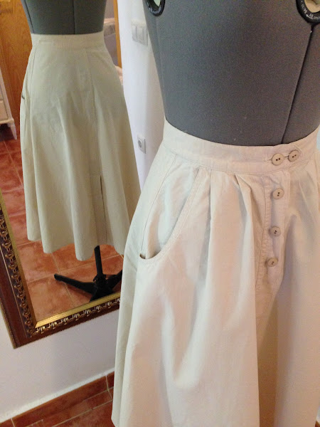 Esta falda de lino en el estilo Safari. ¡Y la única no hecha por mí! Es vintage del princ. 80s. La falda de Suiza llevaba para mi mamá su amiga. Como esta pequeña se hacía mia y la llevo ya unos 20 años. ¡El modelo eterno!