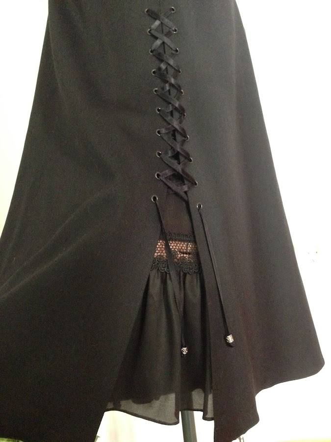 Y esa preciosidad es mi pena! Hasta nacer niña yo tenia mas carne. Ahora esta falda no me vale. Deshacerla es mas dificil que repetir de nuevo- al reves esta hecho coma la falda interior con encaje. Y esa detalle con cordones! He decidido regalarla. Quien se apunta?