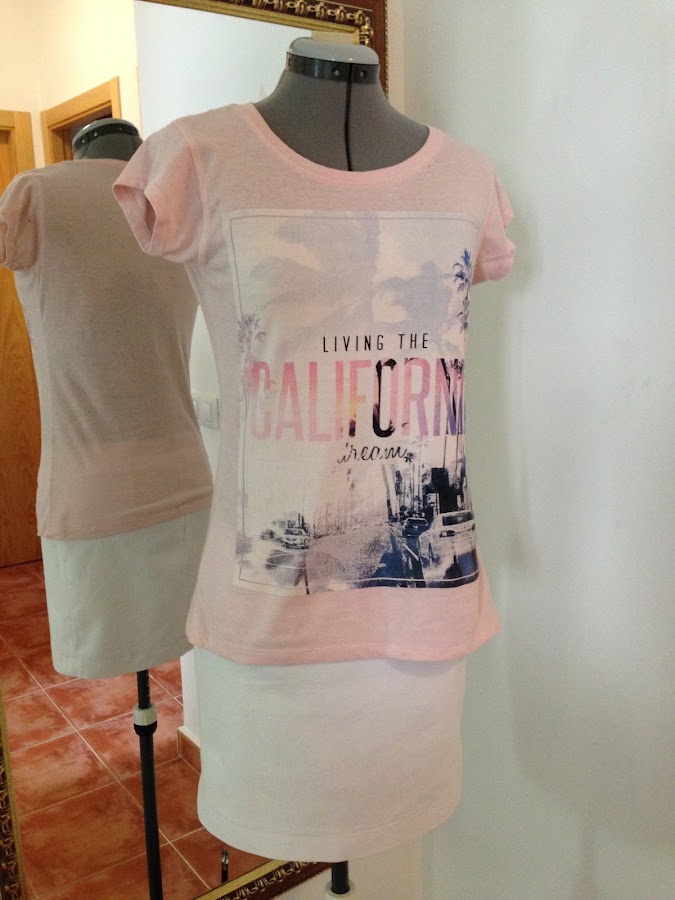 Las faldas, que llevo con las camisetas, coso sin cinturón y con cintura baja - estan formando el vientre plano.