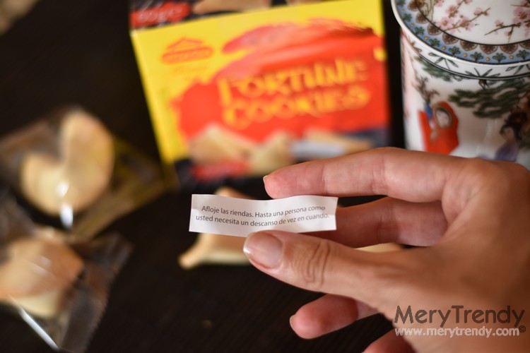 Eso, si "sobreviven" al viaje de regreso a casa y no llegan hechas añicos, claro; como me sucedió a mí que, aunque las guardé con mucho mimo en mi maleta, cuando la abrí de nuevo, en los tres paquetes que compré, solo quedaban los mensajitos "flotando" entre migajas (debo decir que muy crujientes, eso sí Jajaja). Así que tuve que regalar única y exclusivamente Palabras De Sabiduría Jajaja.