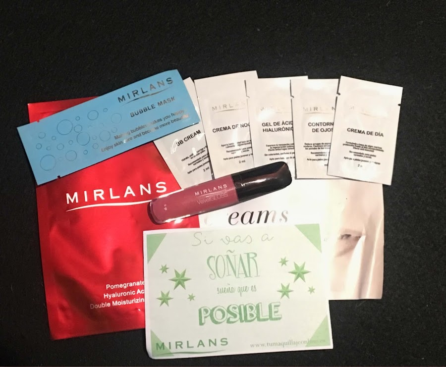 Mirlans también me envió unas muestras de algunos de sus productos como contorno de ojos, crema facial, su mascarilla bubble mask y su mascarilla de granada y ácido hialurónico.
