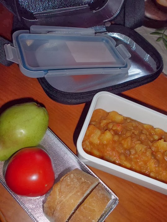 Porque cuando vas al trabajo, llevas todo en un bolso grande, todo liado en papel de aluminio, que si el pan se desmiga y la fruta pilla porrazos.... Que no te hace gracia comer todos los días una tortilla y te apetece otra cosa más casera, algo más "de cuchara". En fin, una preocupacion.